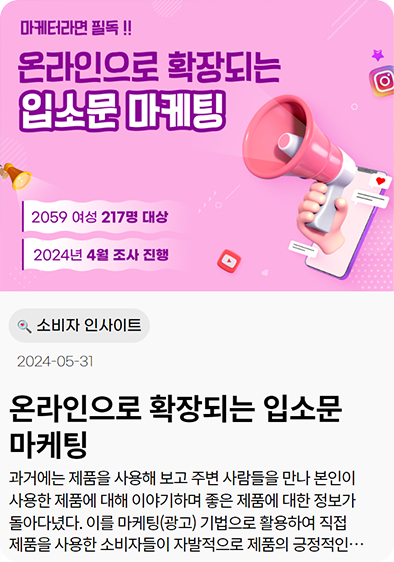 #소비자인사이트 #신제품 개발 #고객경험마케팅 #체험단 #숏폼 #인플루언서 #팬마케팅